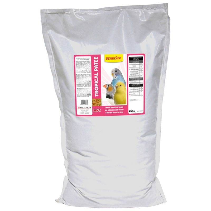 Met een verpakking van 20 kg biedt de Benelux Tropical Patee een langdurige voorraad van hoogwaardige voeding voor siervogels. Geef jouw gevleugelde vrienden het beste met deze voedzame en smakelijke patee. ontwikkeld door Benelux om te voldoen aan de specifieke behoeften van siervogels.